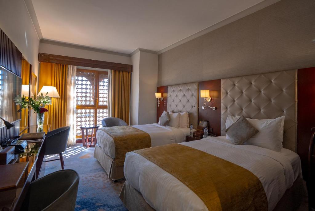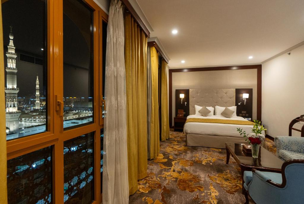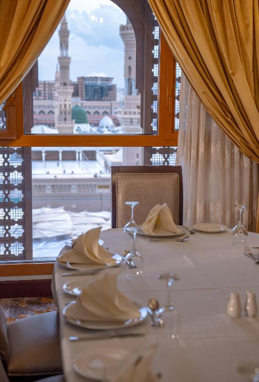 Each room is elegantly decorated in soft, calming colors and features large windows, satellite TV, and a well-stocked minibar with complimentary items. Select rooms offer direct views of the Holy Mosque, combining comfort with a spiritual experience.
